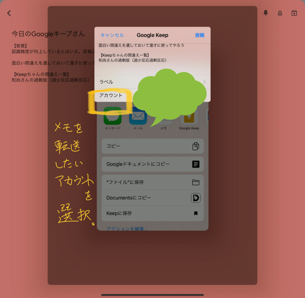 Keepメモを別のアカウントに移動する方法