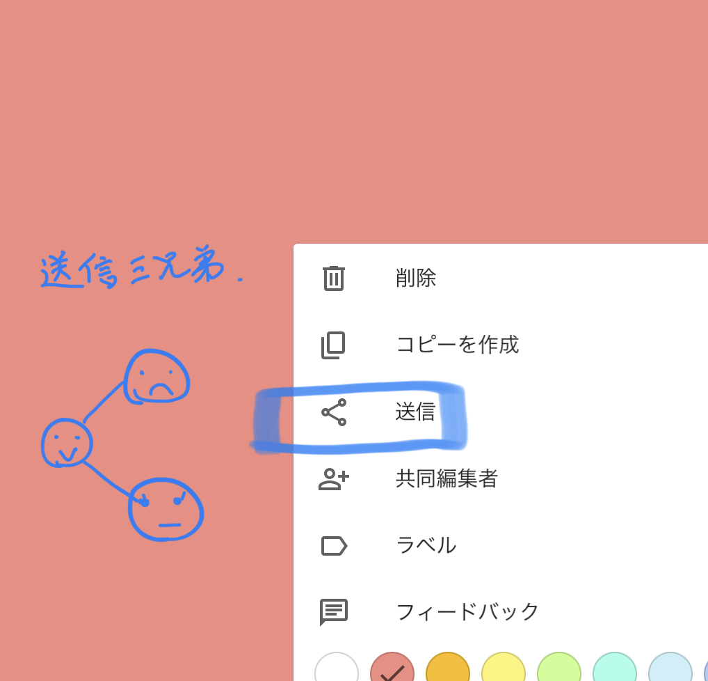 縦3黒丸を押すと「送信」というマークが出てくる