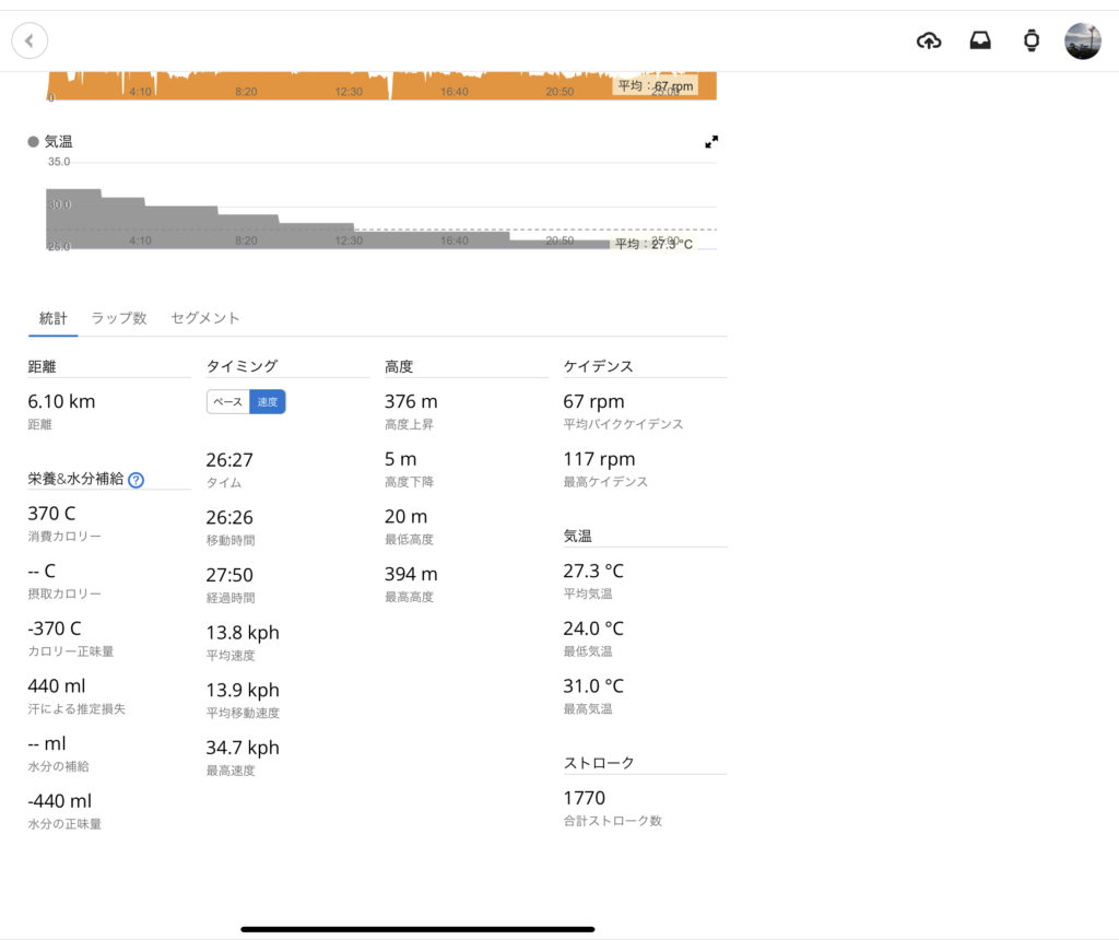 …え~そうですね、平均速度が10kphを下回らずに走れたのは実にいいことだと思います。
